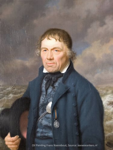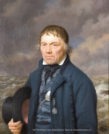 Dutch Frans Naerebout, on the picture, is one of the greatest sea heroes that Vlissingen in The Netherlands has ever had. He was a pilot, not a privateer like the more well-known Michiel de Ruyter. He was someone who saved people’s lives.